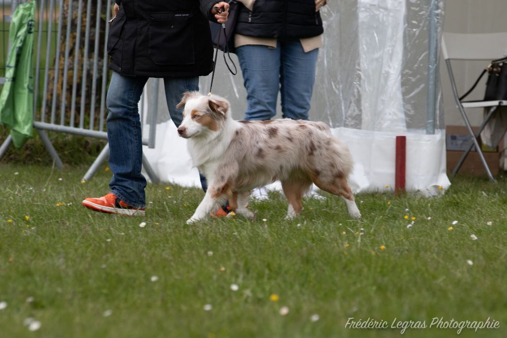 Joli sujet, bien proportionné, DCC, féminine Belle expression, exc yeux, port d'oreilles, lignes correctes, belle pigmentation Dos droit et ferme, exc croupe, exc angulations AV/AR, belle musculature, exc pieds/aplombs Exc caractère, mouvement typique